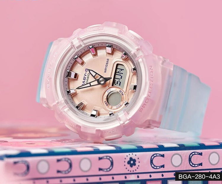 - Sử dụng công nghệ tiên tiến, Casio BGA-280-4A3DR mang lại độ chính xác cao trong việc đo thời gian.