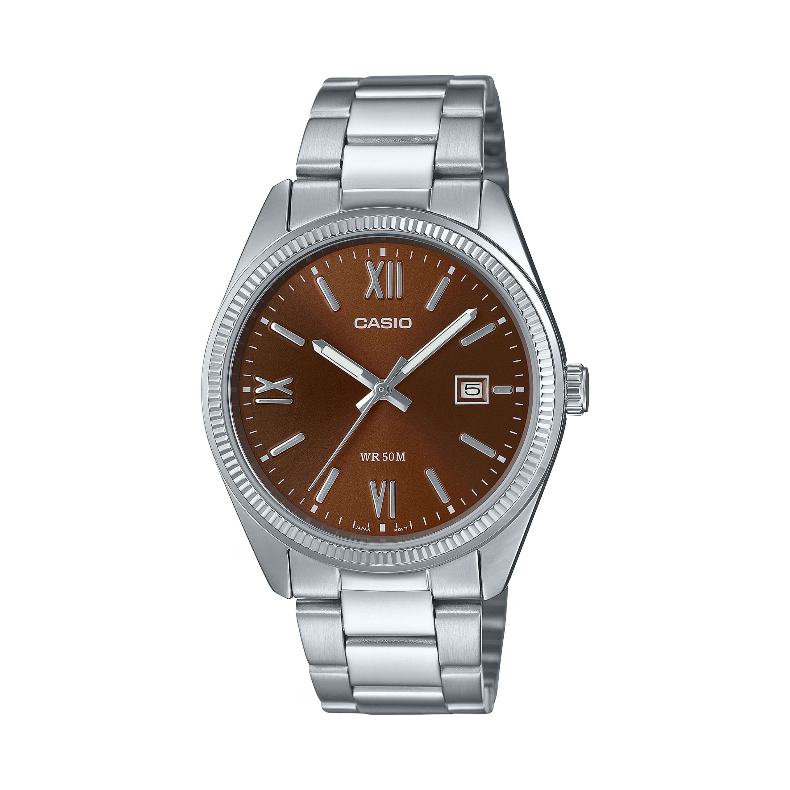 Casio MTP-1302DD-5A là sự giao thoa tinh tế giữa thiết kế cổ điển và hiện đại – dành cho những quý ông yêu thích sự đơn giản, nhưng vẫn chau chuốt và chỉnh chu trong từng chi tiết. Ngay từ cái nhìn đầu tiên, chiếc đồng hồ gây ấn tượng với mặt số màu nâu ánh đồng độc đáo, được chế tác theo dạng hiệu ứng sunburst – bề mặt tỏa sáng nhẹ nhàng khi nghiêng đổi góc nhìn dưới ánh sáng. Đây là điểm nhấn mang lại chiều sâu thị giác và cảm giác cao cấp hơn mức giá của sản phẩm.