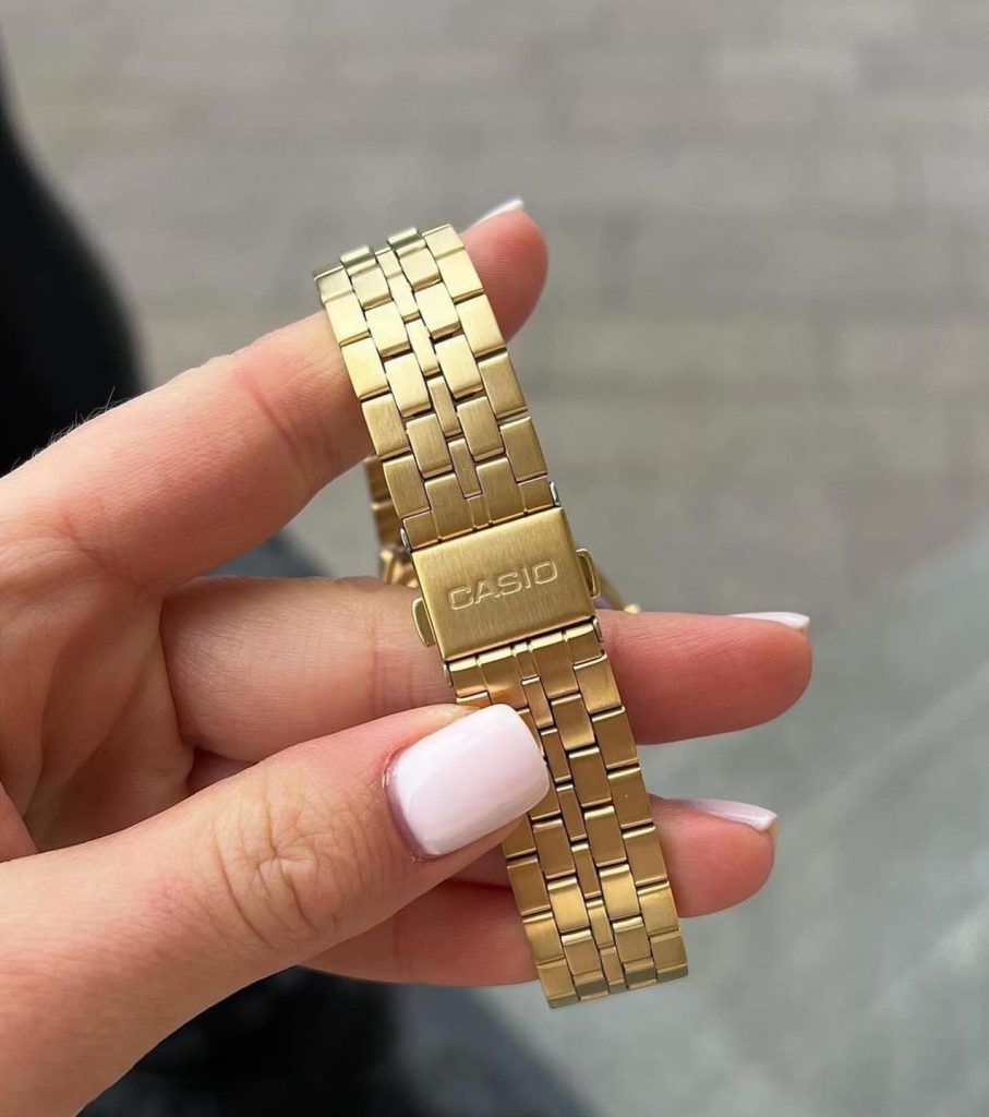 Casio MTP-B145G-9A gây ấn tượng với thiết kế bo tròn mềm mại, cùng kim và cột mốc số tối giản. Tông màu vàng sang trọng mạ PVD trên vỏ và dây đeo thép không gỉ mang đến sự cuốn hút, tạo nên nét cổ điển vượt thời gian. Với đường kính vỏ 35mm, mẫu đồng hồ này phù hợp với cổ tay của cả nam và nữ, đặc biệt là những ai yêu thích phong cách vintage.