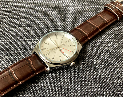 MTP-V006L-7C sử dụng dây da cao cấp màu nâu, mang lại cảm giác thoải mái và bền bỉ khi đeo. Vỏ đồng hồ được mạ crôm sáng bóng, tạo nên vẻ ngoài sang trọng và thu hút. Mặt kính khoáng của đồng hồ chống va đập, giúp bảo vệ tốt trước những tác động từ bên ngoài.