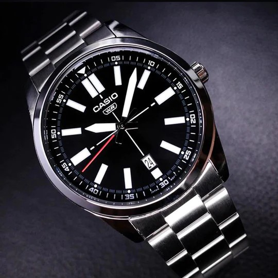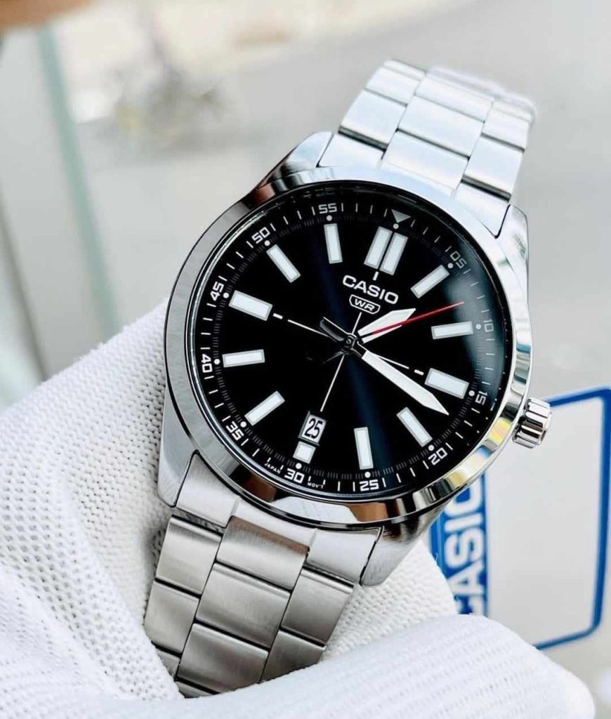Ngoài ra, hệ số chống nước của Casio MTP-VD02D-1E là 5 ATM, cho phép bạn thoải mái rửa tay, đi mưa hoặc tiếp xúc nước ngắn. Một lưu ý nhỏ là bạn nên tránh đeo đồng hồ Casio khi đi lặn, đi bơi để bảo vệ bộ máy bên trong khỏi các tác động từ áp suất nước lớn.
