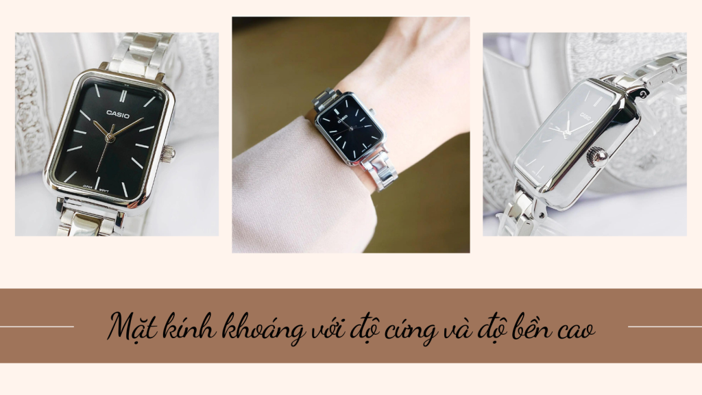 - Mặt kính khoáng có độ cứng và độ bền cao.